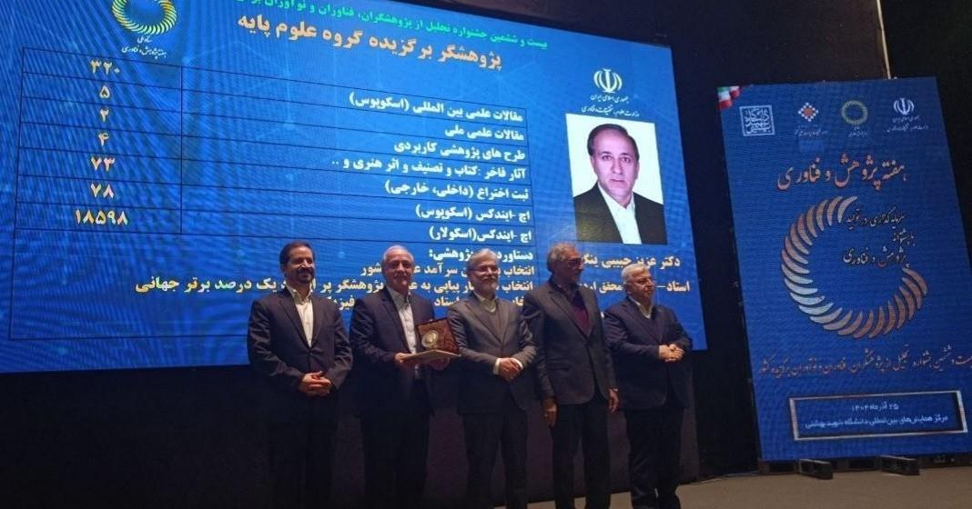 عزیز حبیبی، معاون توسعه مدیریت و منابع استاندار اردبیل در بیست و ششمین جشنواره تجلیل از پژوهشگران، فناوران و نوآوران کشور در سال ۱۴۰۴، عنوان «پژوهشگر برگزیده کشور» را به خود اختصاص داد.